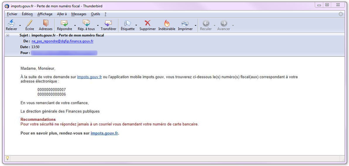 L'usager reçoit aussitôt ce courriel en réponse à sa demande.