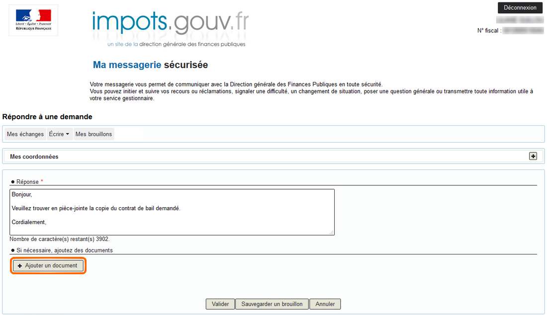 L'usager saisit sa réponse et peut ajouter un ou plusieurs documents.