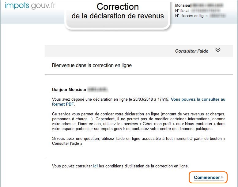 Ce scénario présente la correction d'une déclaration rapide en ligne après la taxation.