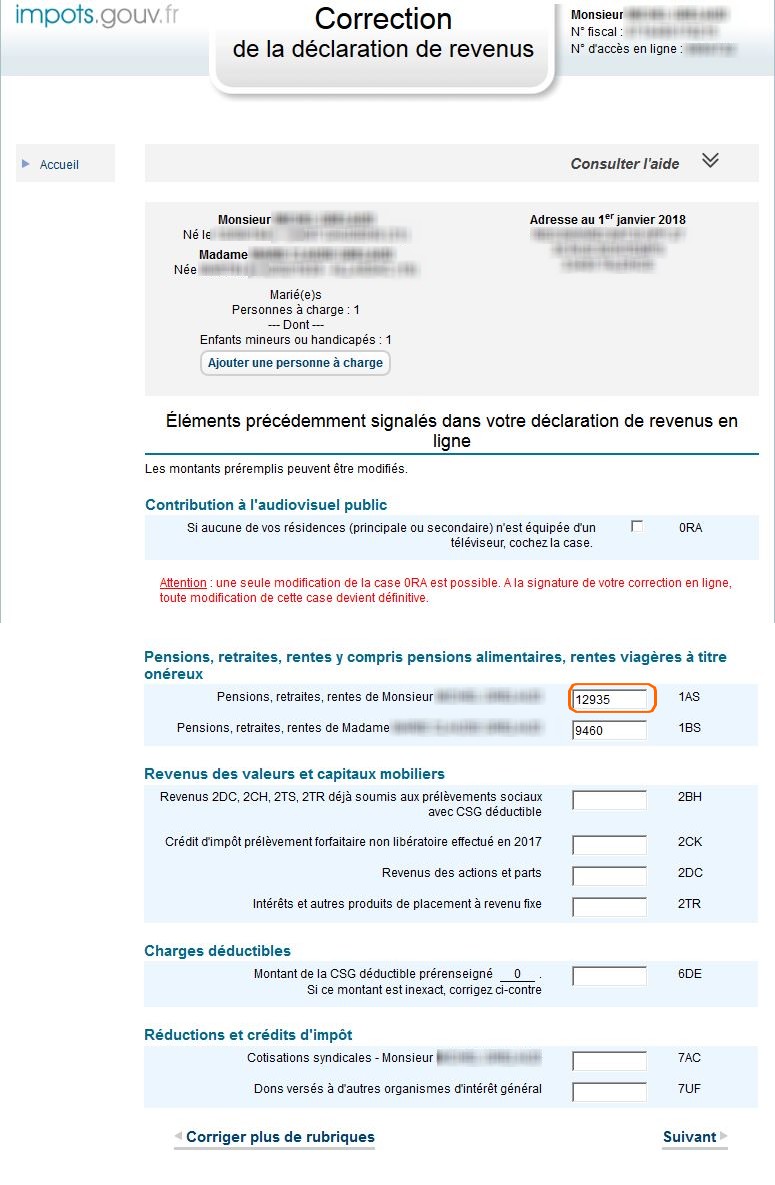 Pour modifier un revenu, il suffit de se positionner dans la case voulue et de saisir le revenu à déclarer.