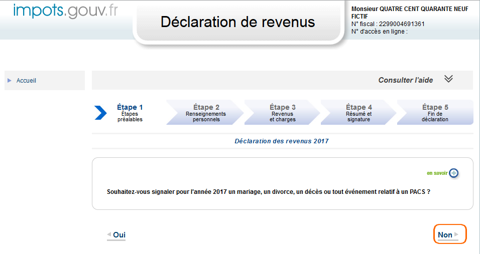 Ce scénario présente la saisie d'une déclaration en ligne sans modification des renseignements personnels.