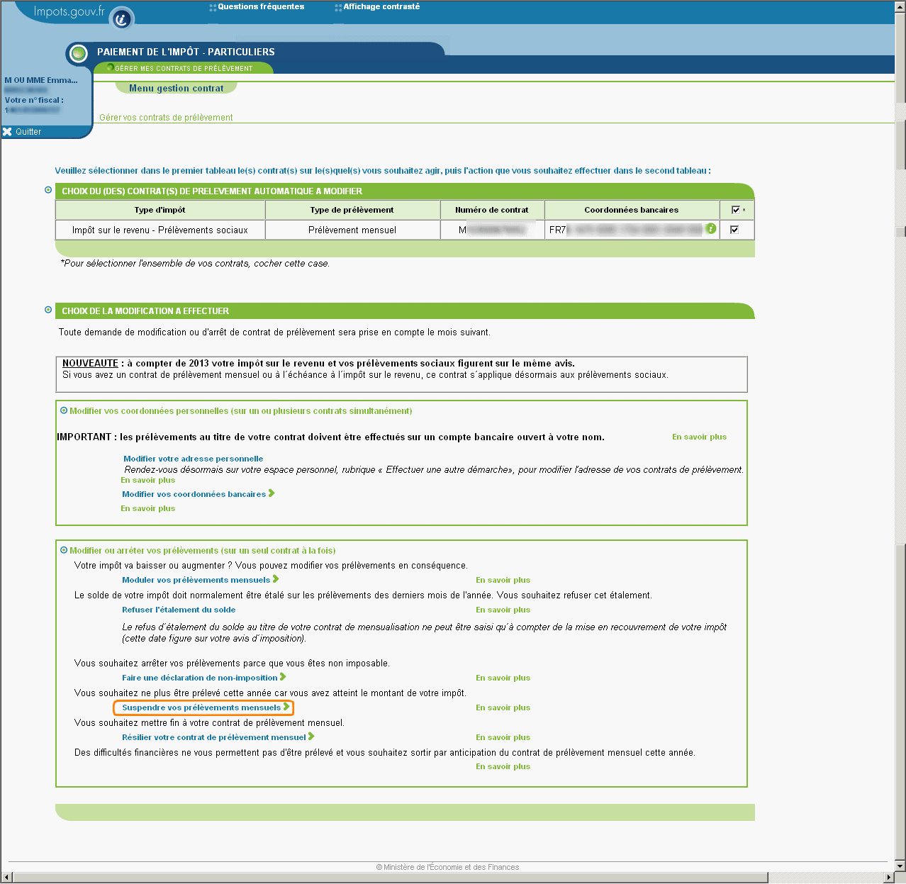 Suspendre vos prélèvements mensuels
